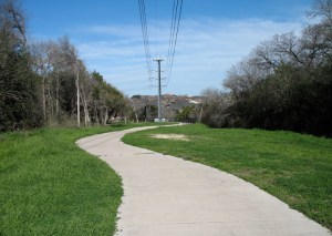 The Pleasant Valley Pocket Park has a wide sidewalk for walkers and cyclists. It runs under the power lines between the cul-de-sac on Pleasant Valley Road, in the Rosemont development, and the 3100 block of Burleson Road. (Click on any image in this blog to enlarge.)