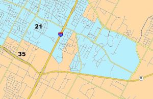 Designed to be a majority-minority district, 35 is an oddly shaped district that extends from Southeast Austin to San Antonio. But in our part of town, it is District 21 that is oddly shaped.
